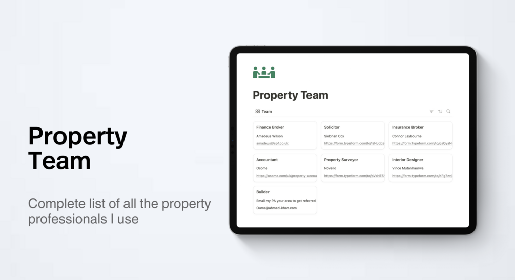 Property Team: Every professional I use in my property business.