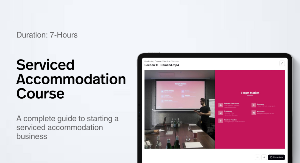 Course: In this 7-hour serviced accommodation course, I will teach you how to get started in property investing with little money using the same short-term rental strategy I used when I started. After university, I rented flats for £925/month and made money from them by renting them out on websites like Airbnb, Booking, etc.